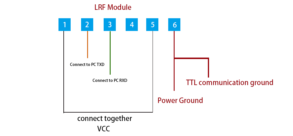 d) El extremo superior de la computadora logra la prueba de reticulación con el conector 0.8WTB-6AB-01 del extremo de la máquina de medición de distancia (Yueqing Huabao) a través del conector 0.8WTB-6Y-2. Las definiciones de las clavijas del puerto de comunicación y fuente de alimentación en el extremo del telémetro se muestran en la Tabla 1, y las posiciones de las clavijas del conector se muestran en la Figura 3.